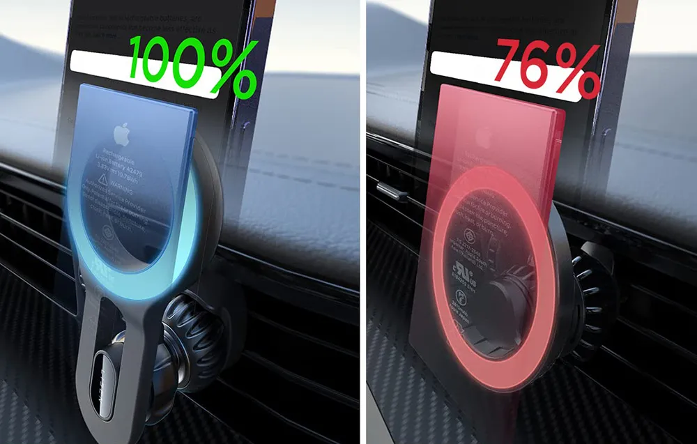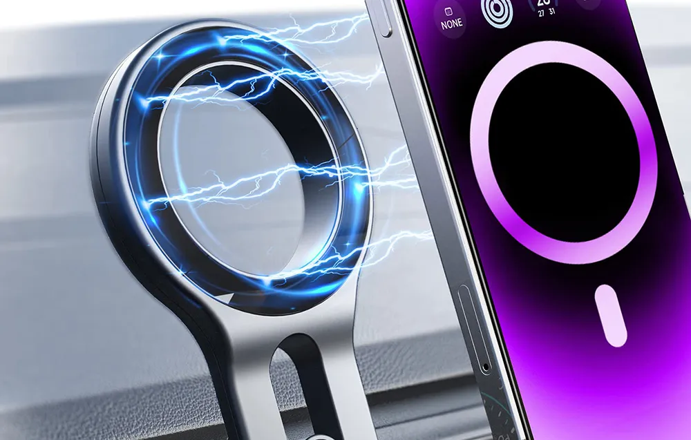 Ugrađeni snažni magneti osiguravaju iznimno stabilno prianjanje, otpornost na koroziju i visoku temperaturnu stabilnost. Zahvaljujući preciznom rasporedu magneta, uređaj ostaje sigurno na mjestu i pri vožnji po neravnim cestama.